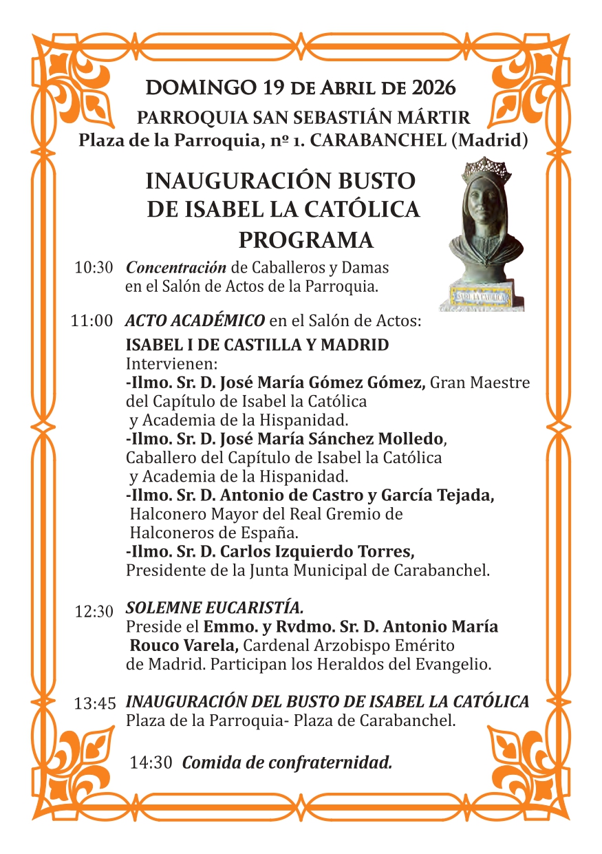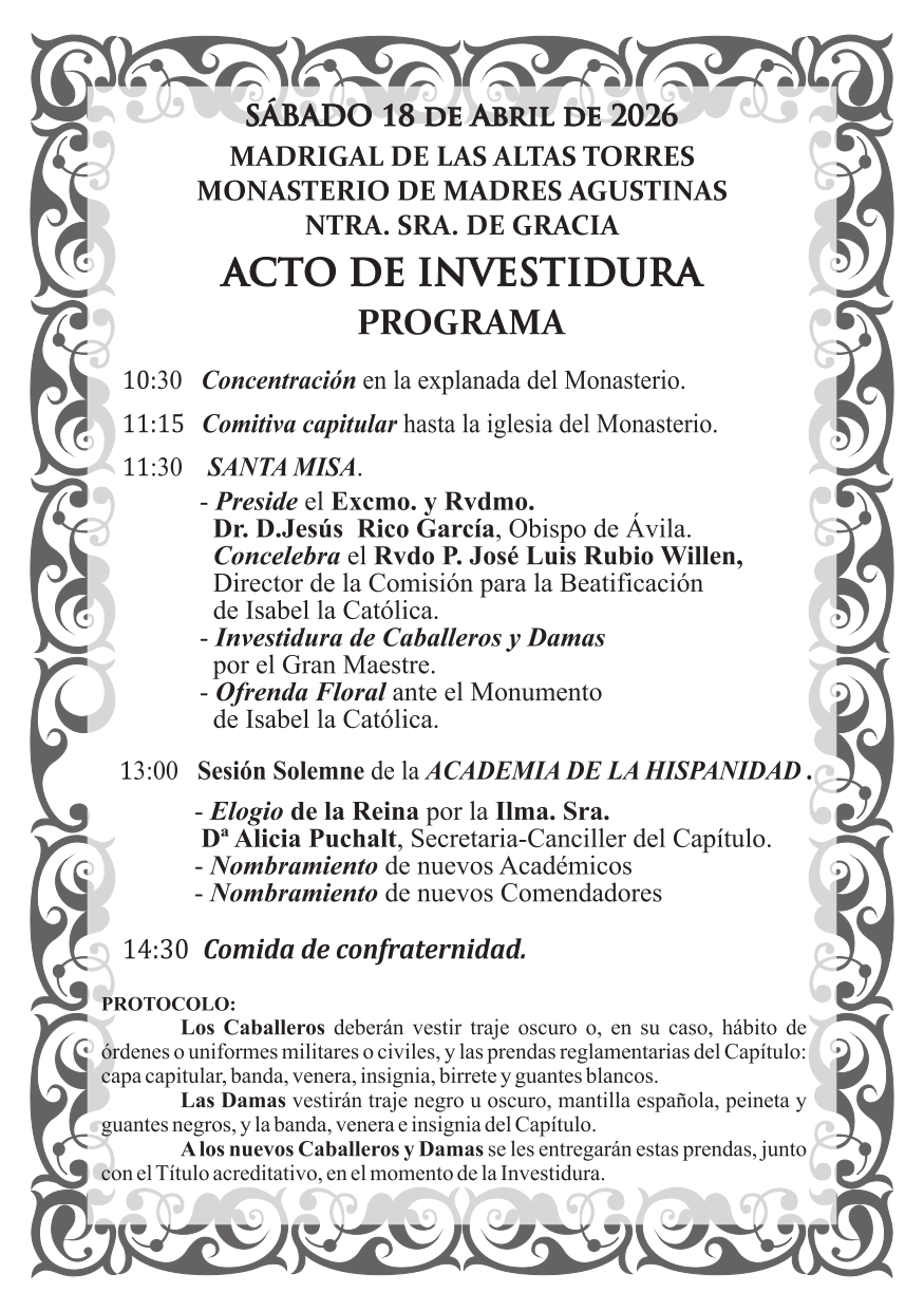 - El Capítulo de Isabel y la Academia asistirán el día 19 de junio de 2025 a la misa mozárabe en la catedral y procesión solemne por las calles de Toledo.
