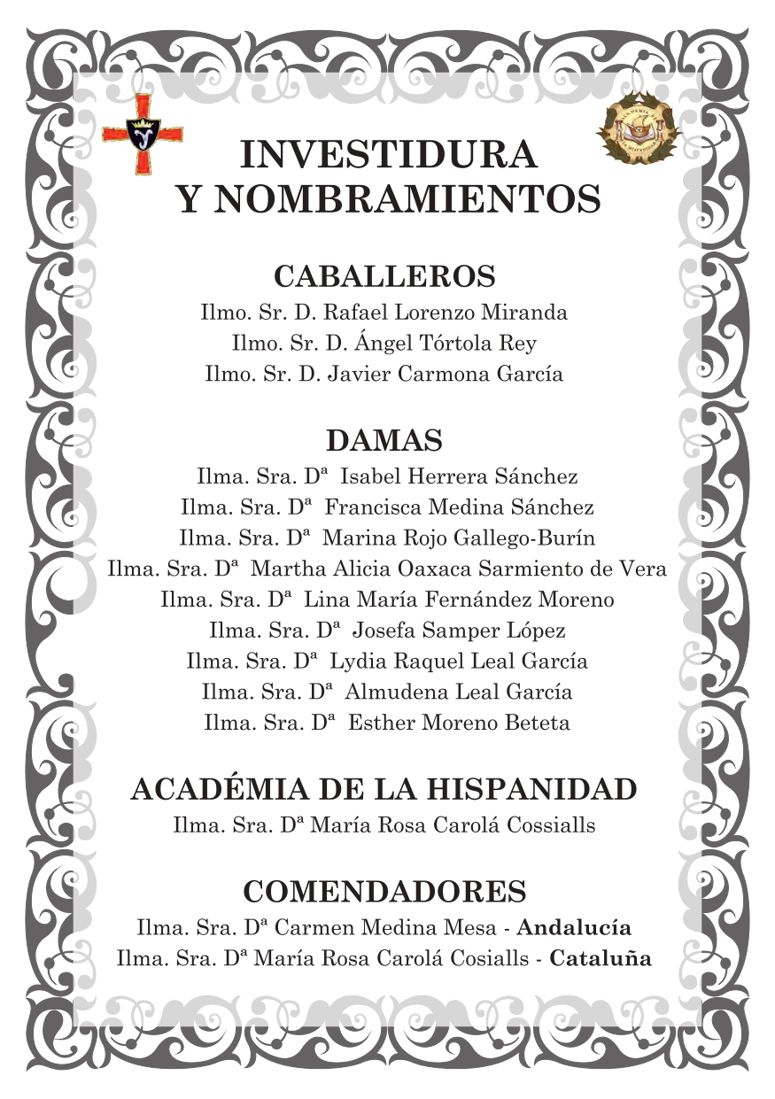 torno al día 26. Esta Investidura tiene carácter itinerante y